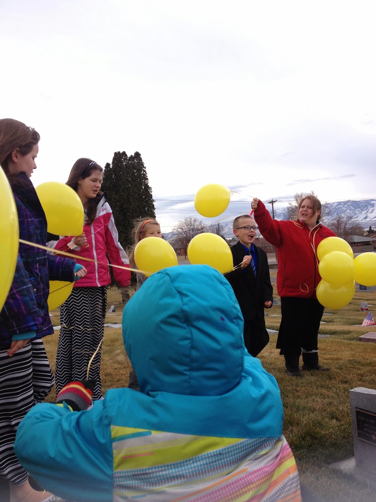The next day was Doug's grandma Ivins' birthday. We all went to her grave to send her balloons to heaven and wish her a happy birthday. It was a little freezing but we had a great time.